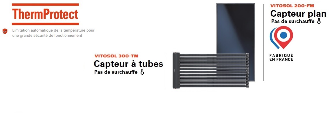 • > Vitosol 300-TM : Tubes sous vide bénéficiant de la limitation ThermProtect – antisurchauffe