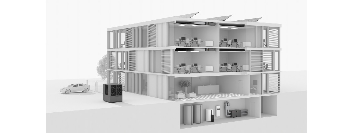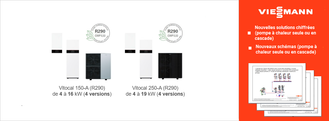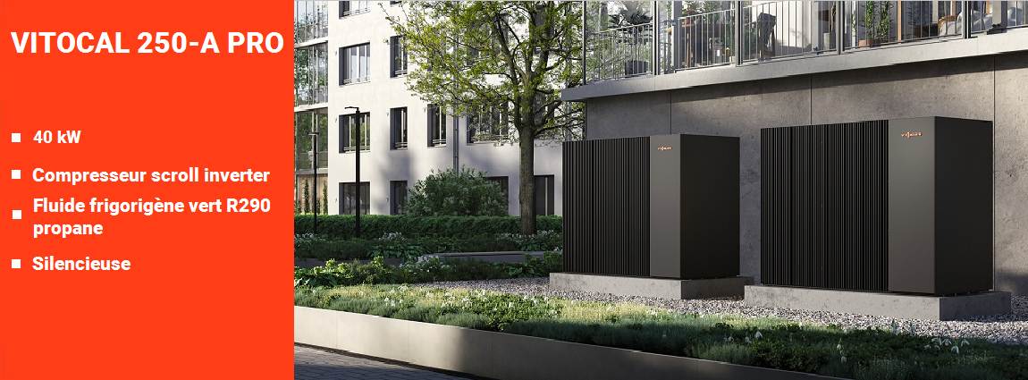 • > Nouvelle pompe à chaleur Vitocal 200-A PRO type AWO de 32 à 128 kW pour la rénovation dans le résidentiel collectif et le petit tertiaire