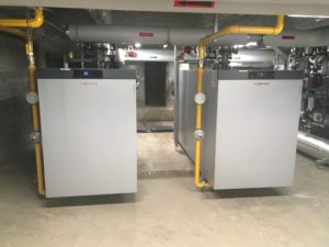 2 chaudières Vitocrossal 200 Type CRU 800 en cascade 2 Vitotrans 222 280 kW en cascade avec 3 ballons Vitocell 100 L de 950 litres